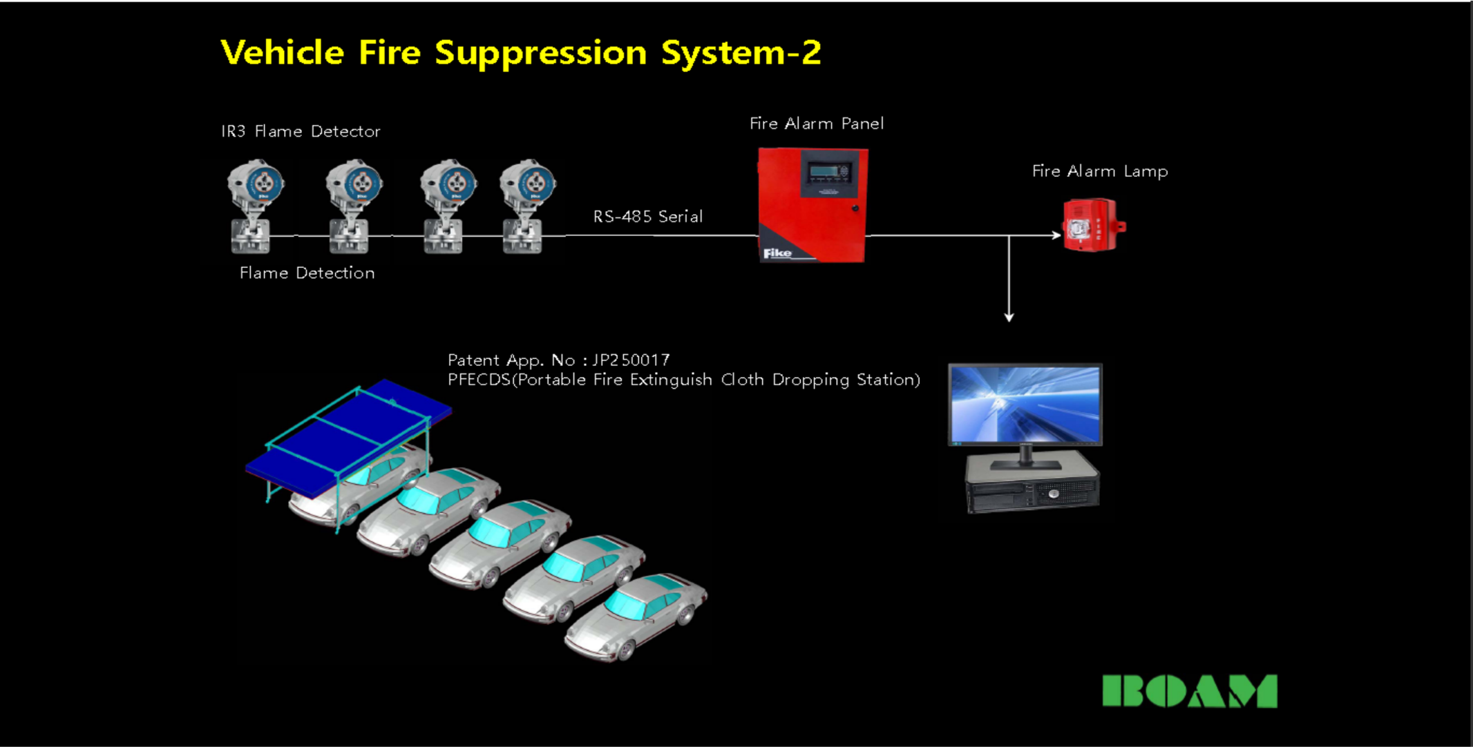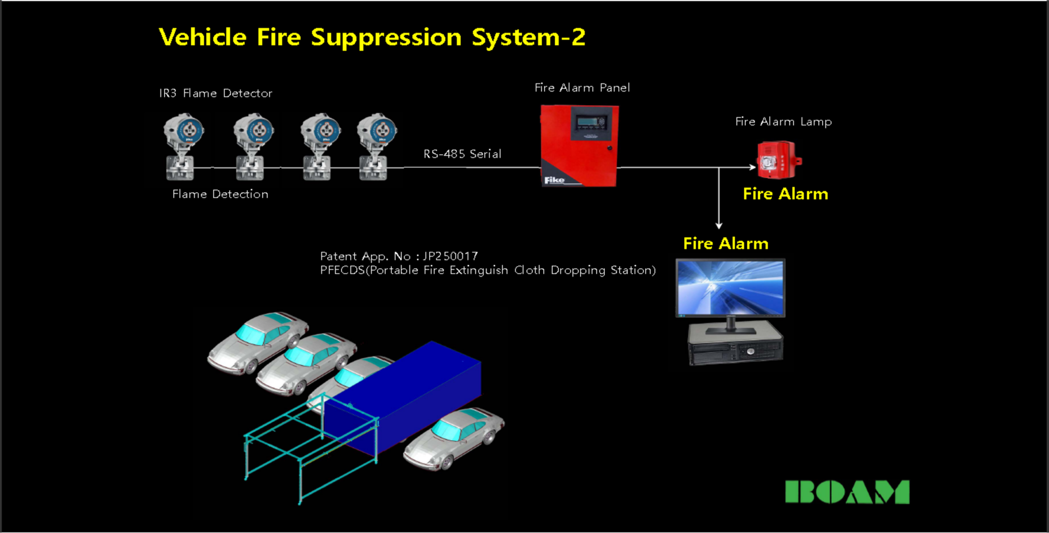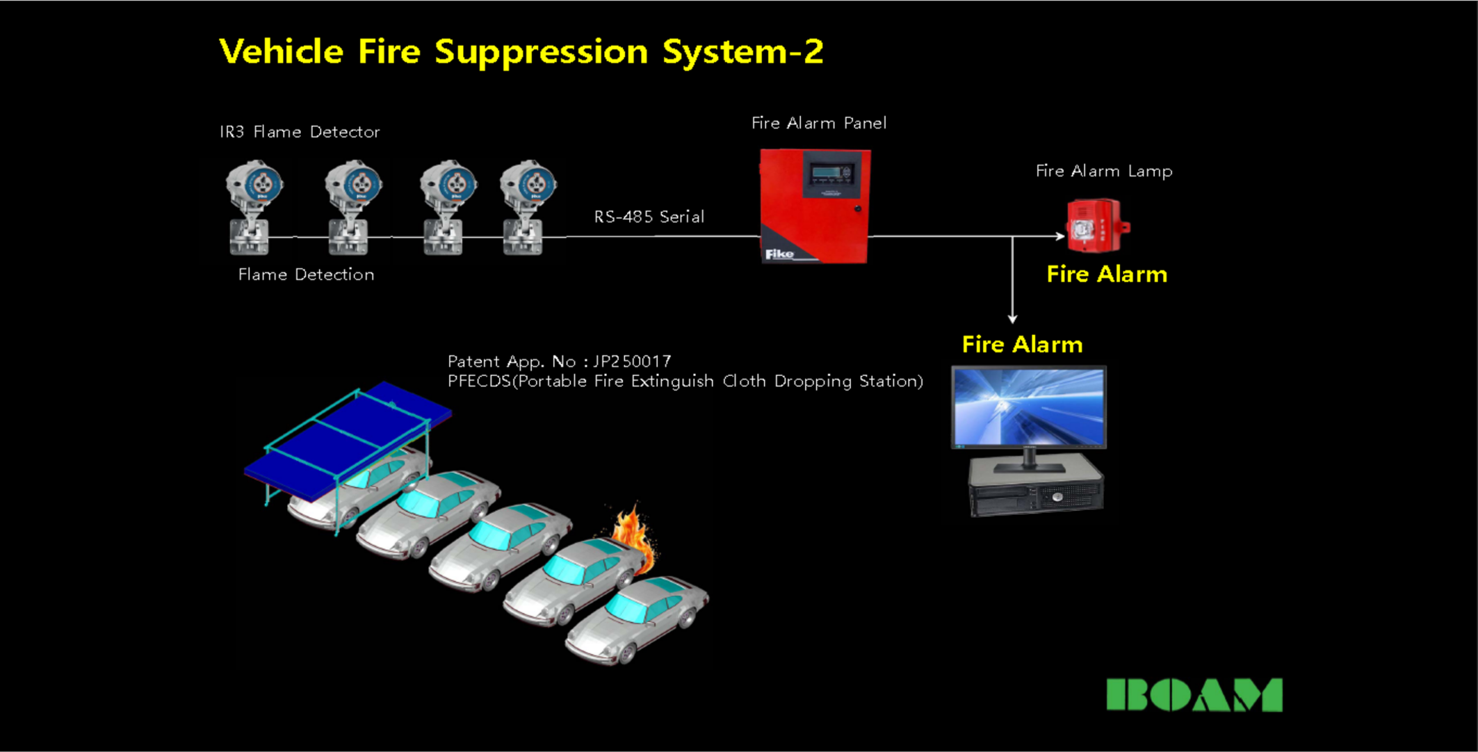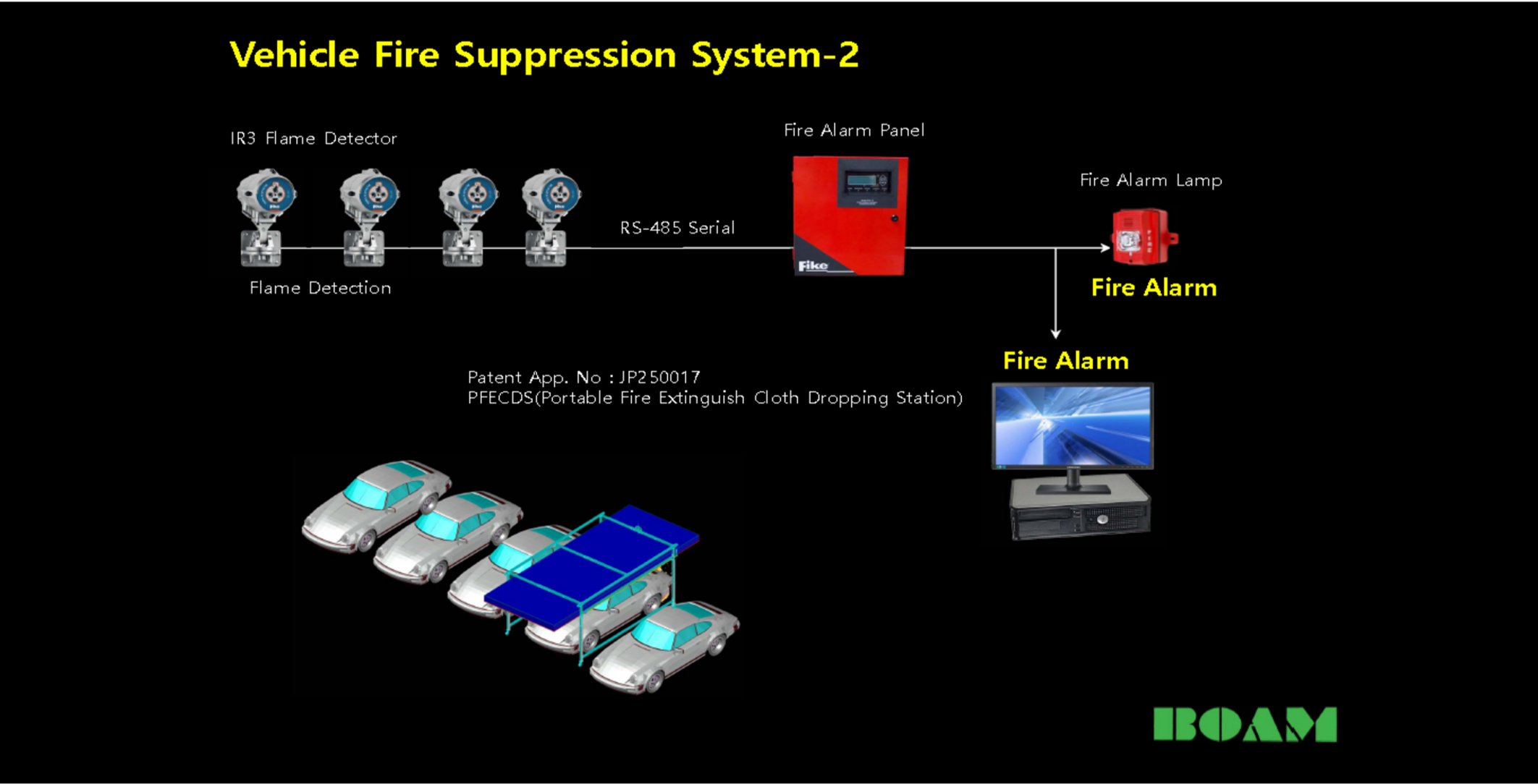 지하 공간에서 차량화재를 초기에 열 및 화염을 감지, 대응하여 화재확산을 방지 및 진압하여 소중한 재산 및 인명피해를 막는다.